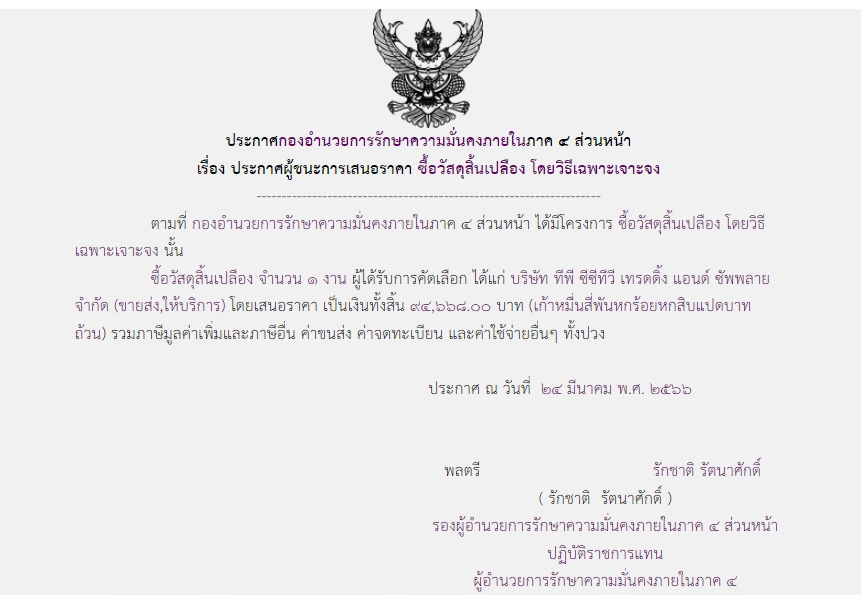 จัดซื้อ จัดจ้างประกาศผู้ชนะการเสนอราคา ประกาศผู้ชนะการเสนอราคา ซื้อวัสดุสิ้นเปลือง โดยวิธีเฉพาะเจาะจง April 14, 2023 371 Share Facebook Twitter Google+ Telegram LINE