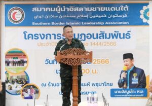 วันที่ 18 เมษายน 2566 ณ ห้องอาหารฮาสานะห์ พลุบาโกย ตำบลสะเตง อำเภอเมือง จังหวัดยะลา พลตรี ปราโมทย์ พรหมอินทร์ รองแม่ทัพภาคที่ 4 / รองผู้อำนวยการรักษาความมั่นคงภายในภาค 4 ส่วนหน้า เป็นประธานเปิดโครงการ “รอมฎอนสัมพันธ์ ประจำปีฮิจเราะห์ศักราช 1444/2566” ที่จัดขึ้นโดยสมาคมผู้นำอิสลามชายแดนใต้ โดยภายในกิจกรรมมีการอัญเชิญพระมหาคัมภีร์อัลกุรอาน ก่อนกล่าวพบปะและมอบทุนการศึกษาแด่ผู้ยากไร้ ที่มีความประพฤติดี มีจริยธรรมที่ดีงาม โดยมี พลตรี ธนัช ฉิมพาลี ผู้บังคับหน่วยเฉพาะกิจยะลา , หัวหน้าส่วนราชการ ตลอดจนสมาชิกสมาคมผู้นำอิสลามชายแดนใต้ เข้าร่วม