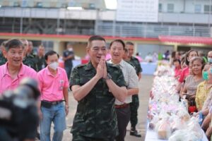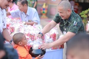 วันนี้ 19 เมษายน 2566 เวลา 06.30 น. ณ มูลนิธิแม่กอเหนี่ยวยะลา อำเภอเมือง จังหวัดยะลา พลโท ศานติ ศกุนตนาค แม่ทัพภาคที่ 4 / ผู้อำนวยการรักษาความมั่นคงภายในภาค 4 และคณะ ร่วมทำบุญตักบาตร แก่พระสงฆ์ จำนวน 10 รูป และสามเณร จำนวน 55 รูป ที่บวชบรรพชาสามเณรภาคฤดูร้อน ซึ่งเป็นโครงการบรรพชาสามเณรภาคฤดูร้อนประจำปี 2566 โดยวัดถาวรวรารามหาดใหญ่ เพื่อร่วมสืบสานฟื้นฟูพระพุทธศาสนา โดยมี นายพงษ์ศักดิ์ ยิ่งชนม์เจริญ นายกเทศมนตรีเทศบาลนครยะลา พร้อมด้วย นายจักรกฤษณ์ ธัญญคุณากรสกุล ประธานมูลนิธิและคณะกรรมการมูลนิธิแม่กอเหนี่ยวยะลา และคณะชมรมวัฒนธรรมจีน (ฉื่อเซี่ยงตึ้ง) ยะลา และพี่น้อง พุทธศาสนิกชนในพื้นที่ร่วมทำบุญตักบาตรในครั้งนี้
