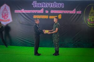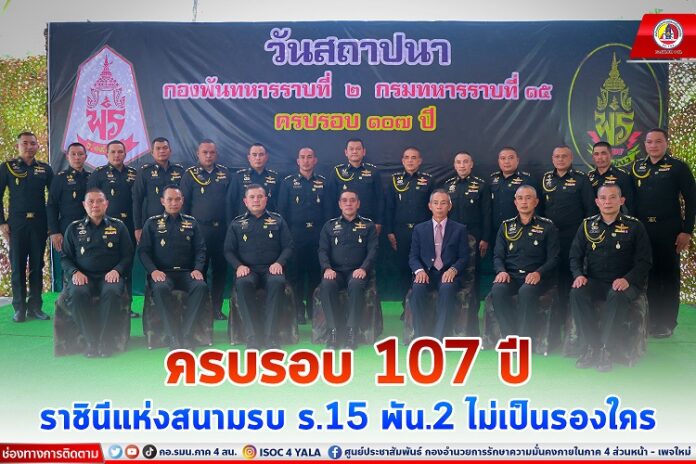 วันนี้ (20 เมษายน 2566) เวลา 10.00 น. ที่ กองพันทหารราบที่ 2 กรมทหารราบที่ 15 (ร.15 พัน.2) ค่ายวชิราวุธ อำเภอเมือง จังหวัดนครศรีธรรมราช ได้จัดพิธีวันสถาปนากองพัน ครบรอบปีที่ 107 โดยจัดให้มีการประกอบพิธีทางศาสนา เพื่อความเป็นสิริมงคลแก่หน่วย และเป็นการอุทิศส่วนบุญส่วนกุศลให้กับกำลังพลผู้เสียชีวิต ก่อนมอบโล่ประกาศเกียรติคุณแก่กำลังพลผู้ประกอบคุณความดีให้แก่หน่วยตามลำดับ โดยมี พลโท ศานติ ศกุนตนาค แม่ทัพภาคที่ 4 เดินทางเป็นประธานในพิธี พร้อมด้วยอดีตผู้บังคับบัญชา นายทหารชั้นผู้ใหญ่ ผู้บังคับหน่วยในพื้นที่ สมาคมแม่บ้าน ตลอดจนกำลังพลและครอบครัว ร่วมพิธีด้วยความพร้อมเพรียง