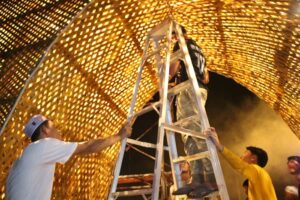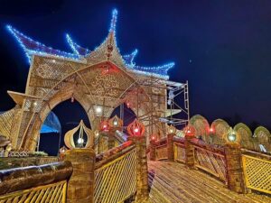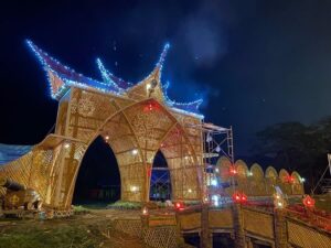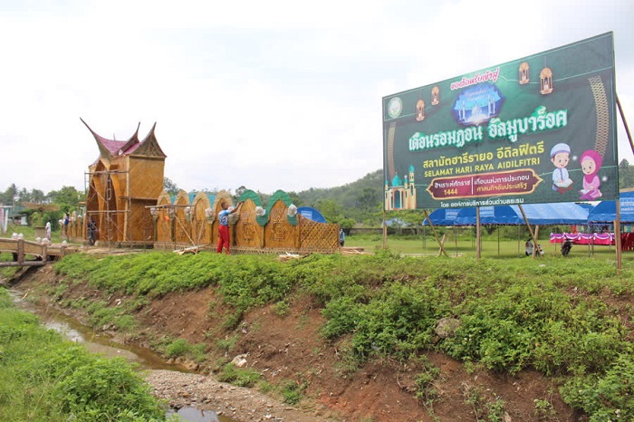 วันนี้ (22 เมษายน 2566) กลุ่มเยาวชนมุสลิมบ้านบังนังสิแน ร่วมกับชาวบ้านมลายูบ้านบันนังสิแน ตำบลยะรม อำเภอเบตง จังหวัดยะลา กว่า 100 คน ใช้เวลาว่างในเดือนรอมฏอน หลังจากละศิลอดไปแล้ว หรือหลังละหมาดตะรอเวียะห์ ได้ร่วมกันคนละไม้ คนละมือ ร่วมกันสร้างประตูชัยแห่งวัฒนธรรมมลายู หรือ ปินตูกืรบังมลายู ต้อนรับช่วงเทศกาลฮารีรายออีฎิ้ลฟิตริ ฮิจเราะห์ศักราช 1444
