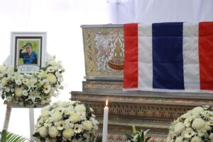 วันนี้ (22 เมษายน 2566) เวลา 16.30 น. ที่ศาลาฉวานุเคราะห์ วัดพุทธภูมิ อำเภอเมือง จังหวัดยะลา พลโท ศานติ ศกุนตนาค แม่ทัพภาคที่ 4 / ผู้อำนวยการรักษาความมั่นคงภายในภาค 4 เป็นประธานสวดพระอภิธรรมศพ สิบตำรวจตรี นันทยศ ชูดวง อายุ 29 ปี ตำแหน่งผู้บังคับหมู่ กองกำกับการตำรวจตระเวนชายแดนที่ 44 ปฎิบัติหน้าที่ในกองอำนวยการรักษาความมั่นคงภายในภาค 4 ส่วนหน้า ในตำแหน่งเจ้าหน้าที่ชุดเฝ้าตรวจชายแดนที่ 4410 กองกำลังตำรวจตะเวนชายแดนจังหวัดชายแดนใต้ ส่วนปฏิบัติกองกำลังตำรวจจังหวัดชายแดนใต้ ที่เสียชีวิตจากเหตุคนร้ายไม่ทราบจำนวน ลอบวางระเบิด ชุดเฝ้าตรวจชายแดนที่ 4410 ขณะออกสืบสวนหาข่าวและตรวจสอบเสาสัญญาณโทรศัพท์ โดยเหตุเกิดบริเวณบ้านตอออ หมู่ที่ 1 ตำบลกายูคละ อำเภอแว้ง จังหวัดนราธิวาส เมื่อวันที่ 20 เมษายน 2566 ที่ผ่านมา เป็นเหตุให้เจ้าหน้าที่ตำรวจได้รับบาดเจ็บ 2 นาย และ เสียชีวิตในเวลาต่อมา 1 นาย คือ สิบตำรวจตรี นันทยศ ชูดวง โดยมี พลตรี ไพศาล หนูสังข์ รองแม่ทัพภาคที่ 4 / รองผู้อำนวยการรักษาความมั่นคงภายในภาค 4 ส่วนหน้า, พลตรี สุตศรัณย์ ลำเจียก รองหัวหน้าสำนักงานเลขานุการคณะกรรมการขับเคลื่อนการแก้ไขปัญหาจังหวัดชายแดนภาคใต้ส่วนหน้า พร้อมด้วยผู้บังคับบัญชา หัวหน้าส่วนราชการ กำลังพล ประชาชนในพื้นที่และครอบครัวร่วมในพิธี เพื่อแสดงความไว้อาลัยต่อวีรชนผู้กล้า และให้กำลังใจครอบครัวของผู้เสียชีวิต