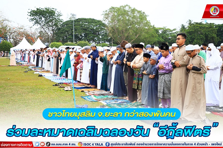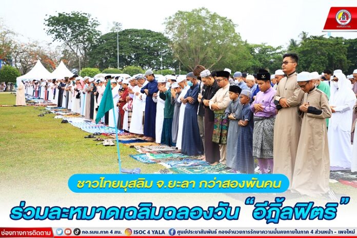 โดยบรรยากาศที่ศูนย์เยาวชนเทศบาลนครยะลา อำเภอเมือง จังหวัดยะลา ซึ่งทางเครือข่ายองค์กรมุสลิม ได้จัดให้มีพิธีละหมาดวันอีฎิ้ลฟิตริ เพื่อให้ชาวไทยมุสลิมในพื้นที่จังหวัดยะลา และพื้นที่ใกล้เคียง ร่วมเฉลิมฉลองเทศกาลฮารีรายอ ได้มีพี่น้องชาวไทยมุสลิม เดินทางมาร่วมละหมาดอีฎิ้ลฟิตริเฉลิมฉลองขอพรกันกว่า 2,000 คน จนเต็มสนามศูนย์เยาวชน ฯ นอกจากนี้ ก็จะมีการบรรยายธรรม(คุฎบะฮุ) ให้กับผู้มาร่วมละหมาด การแสดงความยินดีและขออภัยต่อกัน (การขอมาอัฟ ) ในสิ่งที่ได้ล่วงละเมิด ทั้งโดยตั้งใจหรือไม่ตั้งใจก็ตาม การบริจาคทาน รวมทั้ง ยังมีการแจกจ่ายอาหารให้กับผู้เข้าร่วมพิธี อีกด้วย