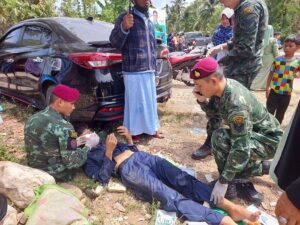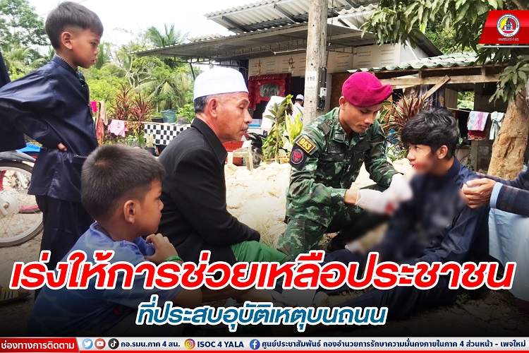 เมื่อวันที่ 22 เมษายน 2566 เวลา 14.00 น. ชุดสันติสุขที่ 304 ชุดควบคุมที่ 853 หน่วยเฉพาะกิจสันติสุข ในขณะออกปฏิบัติภารกิจในพื้นที่ พบรถจักรยานยนต์ประสบอุบัติเหตุ บริเวณถนนหมายเลข 4077 สามแยกบ้านแกละ ตำบลบาโร๊ะ อำเภอยะหา จังหวัดยะลา จึงเร่งให้การช่วยเหลือโดยทันที ซึ่งที่เกิดเหตุพบผู้ได้รับบาดเจ็บ จำนวน 2 ราย คือ นางสาวซูตี สะระยะ อายุ 14 ปี และนายนัซรอน ซาและ อายุ 16 ปี ทางชุดสันติสุขที่ 304 จึงดำเนินการประสานรถโรงพยาบาลเทศบาลตำบลปะแต อำเภอยะหา จังหวัดยะลา ในการนำผู้ได้รับบาดเจ็บเข้ารับการรักษาตัว ณ โรงพยาบาลสมเด็จพระยุพราชยะหา อำเภอยะหา จังหวัดยะลา จากนั้นดำเนินการกันเขตจราจรอำนวยความสะดวกในการใช้เส้นทางบนถนน เพื่อป้องกันการเกิดอุบัติเหตุซ้ำซ้อน