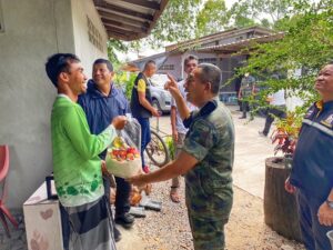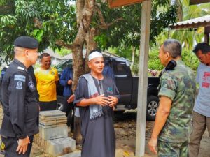 ณ หมู่ที่ 1 ตำบลท่ากำชำ อำเภอหนองจิก จังหวัดปัตตานี พลตรี ขจรศักดิ์ อินทร์ทอง ผู้บังคับหน่วยเฉพาะกิจปัตตานี พร้อมด้วย ฝ่ายสร้างความเข้าใจ หน่วยเฉพาะกิจปัตตานี และรองผู้บังคับหน่วยเฉพาะกิจกรมทหารพรานที่ 43 เข้าพบปะสร้างความเข้าใจกับผู้นำศาสนา ผู้นำหมู่บ้าน และประชาชนในพื้นที่ หมู่ที่ 1 ตำบลท่ากำชำ อำเภอหนองจิก กรณีการบังคับใช้กฎหมายในพื้นที่ เพื่อให้เกิดความเข้าใจในการปฏิบัติงานของเจ้าหน้าที่รัฐ นอกจากนี้ผู้บังคับหน่วยเฉพาะกิจปัตตานี ได้รับทราบถึงปัญหาความเป็นอยู่ของประชาชนในพื้นที่ จึงขอความร่วมมือให้เจ้าหน้าที่ที่เกี่ยวข้องเร่งดำเนินการให้ความช่วยเหลือและแก้ไขปัญหาต่อผลกระทบที่เกิดขึ้น ในการนี้ ผู้บังคับหน่วยเฉพาะกิจปัตตานี ยังได้มอบสิ่งของอุปโภคบริโภคให้กับประชาชนจำนวน 7 ครัวเรือน เพื่อเป็นการสร้างขวัญและกำลังใจให้กับประชาชนในพื้นที่ รวมทั้งเป็นการสร้างความเชื่อมั่น และแสดงให้เห็นถึงความจริงใจที่เจ้าหน้าที่ภาครัฐพร้อมที่จะให้ความช่วยเหลืออย่างเต็มที่