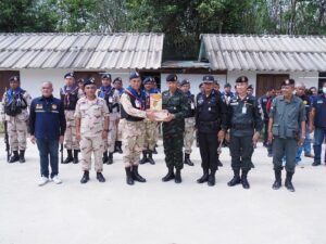 เมื่อวันที่ 23 เมษายน 2566 เวลา 09.00 น. ที่ฐานปฏิบัติการชุดคุ้มครองตำบล ( ชคต.) กายูคละ อำเภอแว้ง จังหวัดนราธิวาส พลตรี เฉลิมพร ขำเขียว ผู้บัญชาการกองพลทหารราบที่ 15/ผู้บังคับหน่วยเฉพาะกิจนราธิวาส เดินทางลงพื้นที่ตรวจเยี่ยมและติดตามการปฏิบัติงานของเจ้าหน้าที่ประจำชุดคุ้มครองตำบล (ชคต.) พร้อมทั้งให้กำลังใจ พบปะพูดคุย มอบแนวทางการปฏิบัติงานเชิงรุกในการดูแลหมู่บ้าน ชุมชน แก่เจ้าหน้าที่ ชุดคุ้มครองตำบล พร้อมทั้งมอบนโยบายมาตรการความปลอดภัยของกำลังพล ต้องปฏิบัติงานด้วยความระมัดระวัง ไม่ประมาท เพื่อไม่ให้ตกเป็นเป้าหมาย โดยมี พันเอก ภาคิน เกื้อกูล ผู้บังคับหน่วยเฉพาะกิจกรมทหารพรานที่ 48 ปลัดตำบลกายูคละ /หัวหน้าชุดคุ้มครองกายูคละ ตลอดจน ผู้นำท้องถิ่น ร่วมให้การต้อนรับ และร่วมประชุม