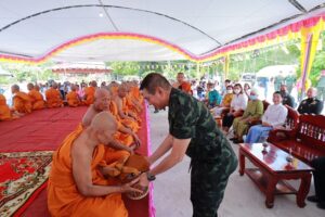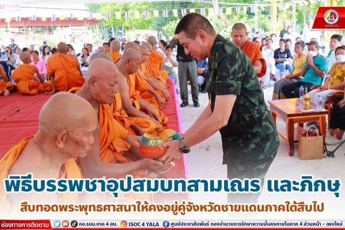 วันนี้ (24 เมษายน 2566) เวลา 11.00 น. ณ วัดเกาะอภินิหาร หรือ วัดกุหร่า (วัดร้าง) ตำบลเปียน อำเภอสะบ้าย้อย จังหวัดสงขลา พลโท ศานติ ศกุนตนาค แม่ทัพภาคที่ 4/ผู้อำนวยการรักษาความมั่นคงภายในภาค 4 เป็นประธานฝ่ายฆราวาสในพิธีบรรพชาอุปสมบทสามเณร และภิกษุ จำนวน 21 รูป พร้อมด้วย พลตรี วรเดช เดชรักษา ผู้บัญชาการกองพลทหารราบที่ 5/ผู้บังคับหน่วยเฉพาะกิจสงขลา เพื่อเสริมสร้างคุณธรรมจริยธรรม ค่านิยมและความเป็นไทย สืบทอดทำนุบำรุงพระพุทธศาสนาในพื้นที่จังหวัดชายแดนภาคใต้ โดยมี พระมานพ มหาวิโร เจ้าอาวาสวัดเกาะอภินิหาร เป็นประธานฝ่ายสงฆ์ และกำลังพลจากหน่วยเฉพาะกิจสงขลา ตลอดจนพุทธศาสนิกชนในพื้นที่ร่วมในพิธี