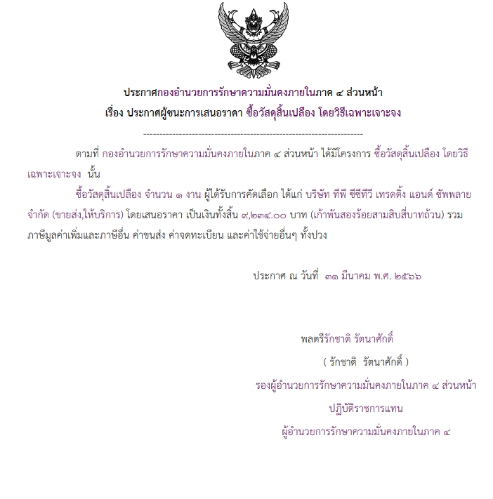 จัดซื้อ จัดจ้างประกาศผู้ชนะการเสนอราคา ประกาศผู้ชนะการเสนอราคา ซื้อวัสดุสิ้นเปลือง โดยวิธีเฉพาะเจาะจง April 24, 2023 373 Share Facebook Twitter Google+ Telegram LINE