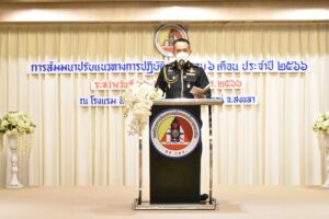 วันนี้ (28 เมษายน 2566) เวลา 10.00 น. ที่ โรงแรม ลี การ์เด้นส์ พลาซ่า อำเภอหาดใหญ่ จังหวัดสงขลา พลตรี เฉลิมพงค์ คงบัว เลขาธิการกองอำนวยการรักษาความมั่นคงภายในภาค 4 ส่วนหน้า เป็นประธานพิธีปิดการประชุมสัมมนาปรับแนวทางการปฏิบัติงานในรอบ 6 เดือน ประจำปี 2566 ของกองอำนวยการรักษาความมั่นคงภายในภาค 4 ส่วนหน้า โดยมี ป้องกันจังหวัดสงขลา, ผู้แทนกองกำลังตำรวจจังหวัดสงขลา, ผู้แทนสำนักอำนวยการ กองอำนวยการรักษาความมั่นคงภายในภาค 4 ส่วนหน้า ทั้งฝ่ายพลเรือน ตำรวจ ทหาร และผู้แทนหน่วยที่เกี่ยวข้องเข้าร่วมในพิธีฯ
