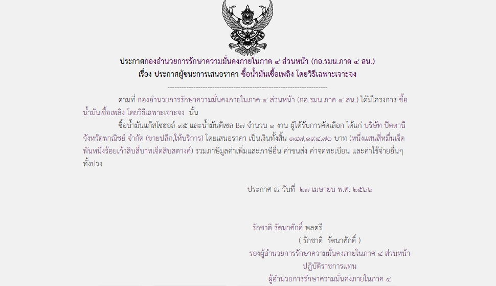 จัดซื้อ จัดจ้างประกาศผู้ชนะการเสนอราคา ประกาศผู้ชนะการเสนอราคา ซื้อน้ำมันเชื้อเพลิง โดยวิธีเฉพาะเจาะจง April 29, 2023 261 Share Facebook Twitter Google+ Telegram LINE