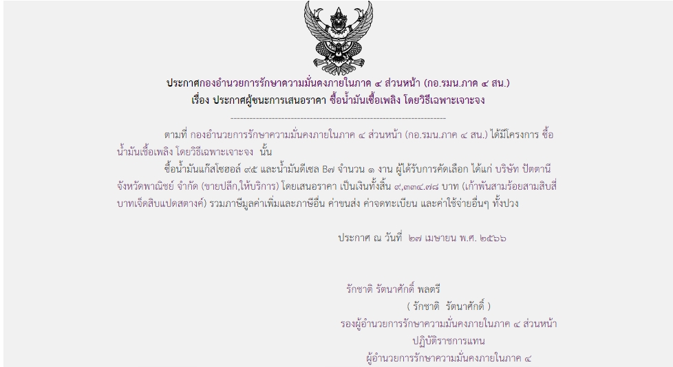 จัดซื้อ จัดจ้างประกาศผู้ชนะการเสนอราคา ประกาศผู้ชนะการเสนอราคา ซื้อน้ำมันเชื้อเพลิง โดยวิธีเฉพาะเจาะจง April 30, 2023 318 Share Facebook Twitter Google+ Telegram LINE