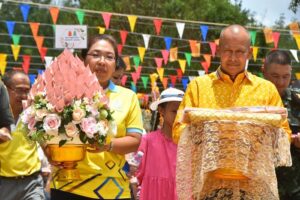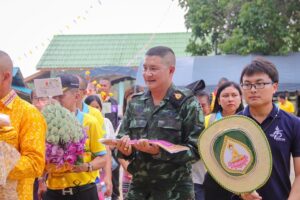 เมื่อวันที่ 30 เมษายน 2566 เวลา 11.30 น. ที่ สำนักสงฆ์อัมพวัน ตำบลสะท้อน อำเภอนาทวี จังหวัดสงขลา พลตรี เฉลิมพร ขำเขียว ผู้บัญชาการกองพลทหารราบที่ 15 / ผู้อำนวยการศูนย์ประสานงานโครงการอันเนื่องมาจากพระราชดำริ เป็นประธานฝ่ายฆราวาสพิธีทอดผ้าป่าสามัคคี เพื่อรักษาขนบธรรมเนียมประเพณีของชาวพุทธ และเพื่อนำปัจจัยบูรณะปฏิสังขรณ์วัด ตลอดจนทำนุบำรุงพระพุทธศาสนา และส่งเสริมให้ประชาชนในพื้นที่จังหวัดชายแดนภาคใต้ได้ปฏิบัติหน้าที่ของพุทธศาสนิกชนที่ดี ซึ่งในพิธีประกอบด้วยพิธีห่มผ้าสไบทิพย์ พระพุทธศรีวิชัย หลวงพ่อเชียงแสน หลวงพ่ออู่ทอง เเละพิธีปิดทองหลวงพ่อสุโขทัย ประจำปี 2566 โดยมี พระมหาชัยวุธ ฐานุตตโม เจ้าอาวาสวัดยางทอง จังหวัดสงขลา เป็นประธานฝ่ายสงฆ์ พร้อมด้วย คุณสมฤดี ขำเขียว พร้อมด้วย คณะอาจารย์ คณะมนุษยศาสตร์และสังคมศาสตร์ มหาวิทยาลัยสงขลานครินทร์ วิทยาเขตปัตตานี , พันเอก อังคาร พร้อมสุข รองผู้อำนวยการศูนย์ประสานงานโครงการอันเนื่องมาจากพระราชดำริ, พันเอก ปัญญาพล สุรทิณฑ์ รองผู้บังคับหน่วยเฉพาะกิจสงขลา, ส่วนราชการ, พุทธศาสนิกชนในพื้นที่ ร่วมอนุโมทนาบุญจำนวนมาก