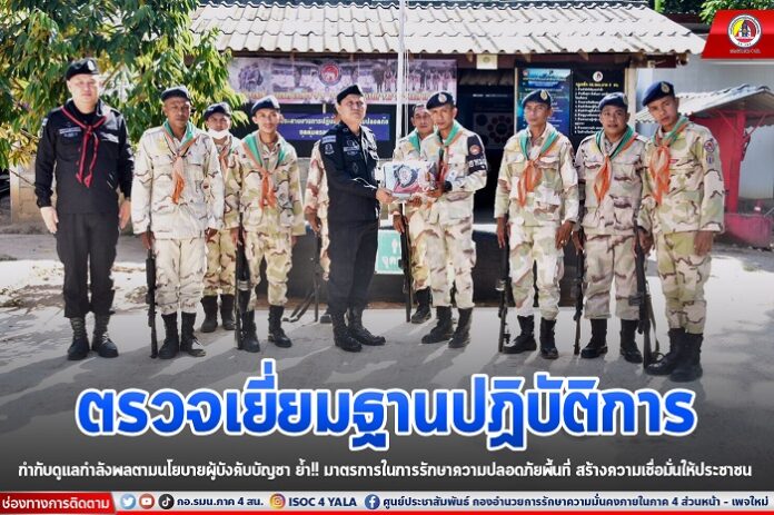 นอกจากนี้ยังได้ลงพื้นที่ไปตรวจเยี่ยมฐานปฏิบัติการชุดคุ้มครองตำบลยะหา (ชคต.ยะหา) อำเภอยะหา จังหวัดยะลา เพื่อติดตามเกี่ยวกับมาตรการ ในการกำกับดูแลรักษาความปลอดภัยพื้นที่บริเวณโดยรอบของฐานปฏิบัติการตามนโยบายของผู้บังคับบัญชา “ตามหลักการปฏิบัติ 3 นอก 4 ใน” รวมทั้งได้เน้นย้ำเกี่ยวกับการปฏิบัติภารกิจของเจ้าหน้าที่จะต้องไม่ประมาทต่อสถานการณ์ พร้อมทั้งสามารถตอบโต้ได้อย่างทันท่วงทีเมื่อถูกกระทำจากฝ่ายตรงข้าม