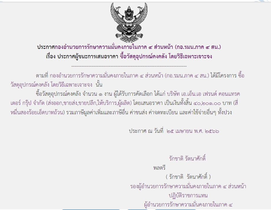 จัดซื้อ จัดจ้างประกาศผู้ชนะการเสนอราคา ประกาศผู้ชนะการเสนอราคา ซื้อวัสดุอุปกรณ์คงคลัง โดยวิธีเฉพาะเจาะจง May 3, 2023 343 Share Facebook Twitter Google+ Telegram LINE