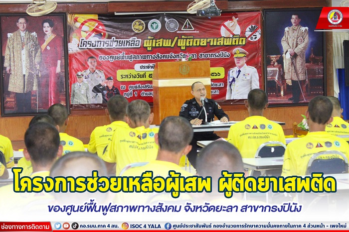 เมื่อวันที่ 8 พฤษภาคม 2566 เวลา 13.30 น. ที่ศูนย์ส่งเสริมและพัฒนาอาชีพการเกษตรจังหวัดยะลา (พืชสวน) หมู่ที่ 1 ตำบลปุโรง อำเภอกรงปินัง จังหวัดยะลา นายอำนาจ ชูทอง รองผู้ว่าราชการจังหวัดยะลา เป็นประธานในพิธีเปิดโครงการช่วยเหลือผู้เสพ/ผู้ติดยาเสพติด ของศูนย์ฟื้นฟูสภาพทางสังคม จังหวัดยะลา สาขากรงปินัง ประจำปีงบประมาณ 2566 โดยเป็นหลักสูตร 15 วัน ในระหว่างวันที่ 5 – 19 พฤษภาคม 2566 มีผู้เข้าร่วมโครงการในครั้งนี้ จำนวน 48 ราย ซึ่งจัดขึ้นเพื่อให้ความช่วยเหลือแก่ผู้เสพยาเสพติดหรือผู้ผ่านการบำบัดรักษาในการให้คำแนะนำ ปรึกษา ช่วยเหลือด้านสวัสดิการสังคม การประกอบอาชีพ การศึกษา และการสงเคราะห์อื่นๆ ให้บุคคลดังกล่าวสามารถดำรงชีวิตในสังคมได้อย่างปกติสุข โดยมี พันเอก สุรศักร ทั่วด้าว ผู้บังคับหน่วยเฉพาะกิจกรมทหารพรานที่ 47 ร่วมกับ นายอำเภอกรงปินัง, ส่วนราชการ และส่วนที่เกี่ยวข้อง ร่วมให้การต้อนรับ