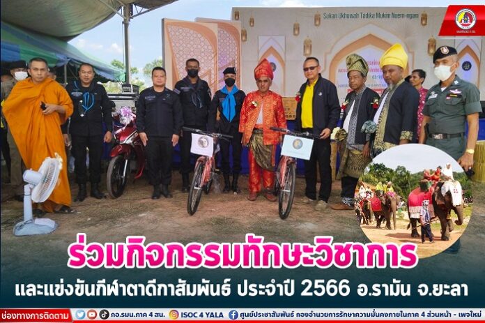 เมื่อวันที่ 8 พฤษภาคม 2566 ที่ สนามกีฬาบ้านกือแล หมู่ที่ 3 ตำบลเนินงาม อำเภอรามัน จังหวัดยะลา ชุดปฏิบัติการเสริมสร้างความเข้าใจ กองร้อยทหารพรานที่ 4113 และหมวดทหารพรานหญิง หน่วยเฉพาะกิจกรมทหารพรานที่ 41 ร่วมกับคณะครู, นักเรียนและหน่วยงานในพื้นที่ ร่วมกิจกรรมทักษะวิชาการ และแข่งขันกีฬาตาดีกาสัมพันธ์ตำบลเนินงาม ประจำปี 2566 เพื่อส่งเสริมกิจกรรมการแข่งขันทักษะทางวิชาการ ทางด้านกีฬา และวัฒนธรรมประเพณีท้องถิ่นสามารถเรียนรู้ศิลปวัฒนธรรมของชาติและของท้องถิ่นด้วยตนเอง รวมถึงการสร้างแรงจูงใจให้เด็กและเยาวชนเห็นความสำคัญในการสืบสาน รักษา และต่อยอดวัฒนธรรมของแต่ละพื้นที่ ทั้งยังเป็นการสร้างความรักความสามัคคีในหมู่คณะของคนในพื้นที่ อำเภอรามัน จังหวัดยะลา โดยมี นายมุขตาร์ มะทา นายกองค์การบริหารส่วนจังหวัดยะลา เป็นประธานเปิดกิจกรรมดังกล่าว