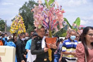วันนี้ ( 18 ตุลาคม 2563 ) เวลา 13.00 น. ที่ วัดสุคิรินประชาราม ตำบลสุคิริน อำเภอสุคิริน จังหวัดนราธิวาส พลตรี ธิรา แดหวา ผู้บัญชาการมณฑลทหารบกที่ 41/รองผู้อำนวยการรักษาความมั่นคงภายในภาค 4 ส่วนหน้า เป็นประธานในพิธีถวายผ้าไตรกฐินพระราชทาน สมเด็จพระนางเจ้าสิริกิติ์ พระบรมราชินีนาถ พระบรมราชชนนีพันปีหลวง ซึ่งกองอำนวยการรักษาความมั่นคงภายในภาค 4 ส่วนหน้า ได้ขอรับพระราชทานผ่านราชเลขานุการในพระองค์ เพื่อนำมาทอดถวายแด่พระสงฆ์ที่จำพรรษาครบถ้วนไตรมาส ณ วัดในพื้นที่จังหวัดชายแดนภาคใต้ เพื่อทำนุบำรุง สืบสานวัฒนธรรมขนบธรรมเนียมประเพณีในพระพุทธศาสนาให้มีความเจริญรุ่งเรืองสืบไป อีกทั้ง ยังเป็นการเสริมสร้างขวัญกำลังใจแก่ พุทธศาสนิกชนในพื้นที่จังหวัดชายแดนภาคใต้ โดยมี พระปลัดเมธา จันทโชโต เจ้าวาส วัดสุคิรินประชาราม, พันเอก ยุทธนา สายประเสริฐ ผู้บังคับการกรมทหารราบที่ 151/ผู้อำนวยการศูนย์ประสานงานโครงการอันเนื่องมาจากพระราชดำริ, พันเอก วรวิทย์ ปัญญาชีวะ เสนาธิการ หน่วยเฉพาะกิจนราธิวาส, นายอรุณ ศรีใส นายอำเภอสุคิริน, ข้าราชการทหาร ส่วนราชการ ตลอดจนพุทธศาสนิกชนในพื้นที่ร่วมพิธีเป็นจำนวนมาก โดยปัจจัยที่ได้จากบริวารกฐินในครั้งนี้ มียอดรวม 644,492 บาท ซึ่งวัดสุคิรินประชาราม จะได้นำไปทำนุบำรุงและบูรณะพระอาราม ตลอดจนศาสนสถานที่ชำรุดเสียหายภายในวัด เพื่อให้พุทธศาสนิกชนได้มีสถานที่ที่เป็นศูนย์รวมจิตใจในพื้นที่สืบไป