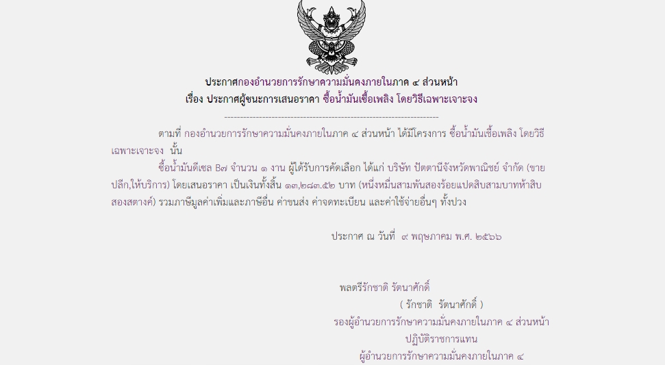 จัดซื้อ จัดจ้างประกาศผู้ชนะการเสนอราคา ประกาศผู้ชนะการเสนอราคา ซื้อน้ำมันเชื้อเพลิง โดยวิธีเฉพาะเจาะจง May 12, 2023 366 Share Facebook Twitter Google+ Telegram LINE
