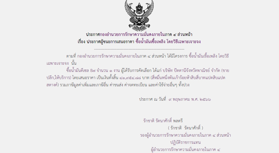 จัดซื้อ จัดจ้างประกาศผู้ชนะการเสนอราคา ประกาศผู้ชนะการเสนอราคา ซื้อน้ำมันเชื้อเพลิง โดยวิธีเฉพาะเจาะจง May 12, 2023 508 Share Facebook Twitter Google+ Telegram LINE