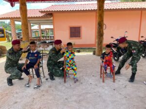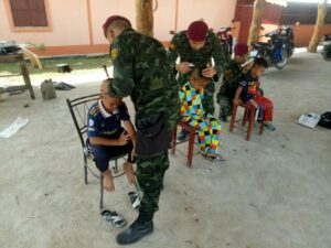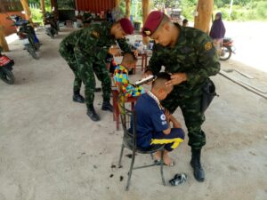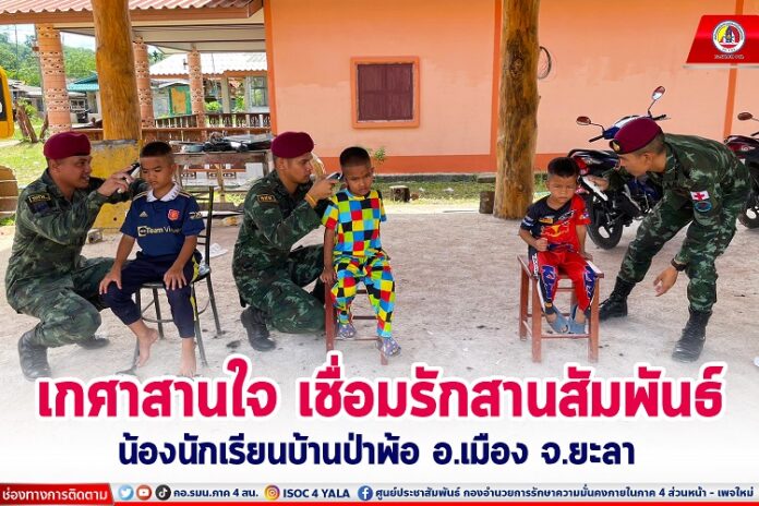 เมื่อวันที่ 11 พฤษภาคม 2566 เวลา 09.30 น. ที่ ศาลาประชาคมหมู่บ้าน บ้านป่าพ้อ หมู่ที่ 3 ตำบลลำใหม่ อำเภอเมือง จังหวัดยะลา หน่วยเฉพาะกิจสันติสุข โดย ชุดควบคุมที่ 953 จัดกำลังพล ชุดปฏิบัติการรบพิเศษที่ 305 ร่วมกับ ชุดทักษิณสัมพันธ์ที่ 301 ออกให้บริการตัดผมเคลื่อนที่ให้กับเด็กนักเรียนในกิจกรรม “เกศาสานใจ เชื่อมรักสานสัมพันธ์” เพื่อให้เด็กนักเรียนมีทรงผมสั้น สะอาดเรียบร้อย และยังเป็นการช่วยแบ่งเบาภาระลดค่าใช้จ่ายในครัวเรือนของนักเรียน และผู้ปกครอง ซึ่งสร้างความสุข และสร้างรอยยิ้มให้กับประชาชนในพื้นที่ ตลอดจนยังเป็นการพัฒนาเสริมสร้างความสัมพันธ์อันดี