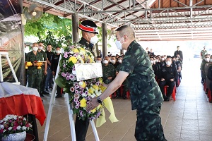 โอกาสนี้ แม่ทัพภาคที่ 4 / ผู้อำนวยการรักษาความมั่นคงภายในภาค 4 ได้วางพวงหรีดในนามของ พลเอก ประยุทธ์ จันทร์โอชา นายกรัฐมนตรี และรัฐมนตรีว่าการกระทรวงกลาโหม ในฐานะผู้อำนวยการรักษาความมั่นคงภายในราชอาณาจักร , พลเอก ณรงค์พันธ์ จิตต์แก้วแท้ ผู้บัญชาการทหารบก /รองผู้อำนวยการรักษาความมั่นคงภายในราชอาณาจักร, พลเอก พรศักดิ์ พูลสวัสดิ์ กรรมการผู้แทนพิเศษของรัฐบาล ด้านความมั่นคง และวางพวงหรีดเคารพศพในนามของแม่ทัพภาคที่ 4 / ผู้อำนวยการรักษาความมั่นคงภายในภาค 4 พร้อมกันนี้ยังมอบเหรียญบางระจันและใบประกาศนียบัตร เพื่อเป็นการประกาศเกียรติคุณ เชิดชูเกียรติ ในการประกอบคุณงามความดีและความเสียสละของผู้เสียชีวิต พร้อมมอบเงินช่วยเหลือเบื้องต้นและแสดงความเสียใจต่อครอบครัวของผู้เสียชีวิต โดยมี พลตรี ไพศาล หนูสังข์ รองแม่ทัพภาคที่ 4 /รองผู้อำนวยการรักษาความมั่นคงภายในภาค 4 ส่วนหน้า, พลตรีศราวุธ จันทร์พุ่ม ผู้อำนวยการสำนักงานพัฒนาภาค 4 หน่วยบัญชาการทหารพัฒนากองบัญชาการกองทัพไทย วางพวงหรีดเคารพศพในนามของ พลเอก เฉลิมพล ศรีสวัสดิ์ ผู้บัญชาการทหารสูงสุด, นายแพทย์สมหมาย บุญเกลี้ยง ผู้ช่วยเลขาธิการ ศูนย์อำนวยการบริหารจังหวัดชายแดนภาคใต้ วางพวงหรีดในนาม พลเอก ประวิตร วงษ์สุวรรณ รองนายกรัฐมนตรี และ พลเรือตรี สมเกียรติ ผลประยูร เลขาธิการศูนย์อำนวยการบริหารจังหวัดชายแดนภาคใต้, พลตรี วรเดช เดชรักษา ผู้บัญชาการกองพลทหารราบที่ 5 / ผู้บังคับหน่วยเฉพาะกิจสงขลา, พลตรี เฉลิมพร ขำเขียว ผู้บัญชาการกองพลทหารราบที่ 15 / ผู้บังคับหน่วยเฉพาะกิจนราธิวาส , พลตรี ขจรศักดิ์ อินทร์ทอง ผู้บัญชาการมณฑลทหารบกที่ 46/ ผู้บังคับหน่วยเฉพาะกิจปัตตานี และหัวหน้าส่วนราชการ ทหาร ตำรวจ ร่วมพิธีเป็นจำนวนมาก