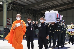 วันนี้ ( 13 พฤษภาคม 2566) เวลา 09.00 น. ที่ วัดสุวรรณากร ตำบลบ่อทอง อำเภอหนองจิก จังหวัดปัตตานี พลโท ศานติ ศกุนตนาค แม่ทัพภาคที่ 4/ ผู้อำนวยการรักษาความมั่นคงภายในภาค 4 เป็นประธานพิธีรดน้ำศพ และพิธีส่งศพ สดุดี สิบเอก สมหมาย นาคสืบวงศ์ เจ้าหน้าที่ชุดปฏิบัติการพิทักษ์พื้นที่ ชุดปฏิบัติการพิเศษ 3 กองร้อยทหารพรานที่ 3006 หน่วยเฉพาะกิจกรมทหารที่ 30 อายุ 32 ปี เสียชีวิตจากเหตุคนร้ายไม่ทราบจำนวนก่อเหตุลอบวางระเบิดเจ้าหน้าที่ ขณะทำการลาดตระเวนพื้นที่รับผิดชอบ บริเวณโรงเรียนบ้านเตาปูน หมู่ที่ 3 บ้านเงาะกาโป ตำบลบันนังสตา อำเภอบันนังสตา จังหวัดยะลา เมื่อวันที่ 12 พฤษภาคม 2566 เวลา 09.20 น.