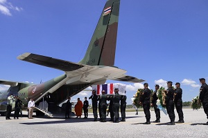 จากนั้นเวลา 11.30 น. ได้เคลื่อนศพเพื่อกระทำพิธีส่งศพที่สนามบินบ่อทอง อำเภอหนองจิก จังหวัดปัตตานี อย่างสมเกียรติ เพื่อนำศพกลับไปบำเพ็ญกุศลตามหลักศาสนายังภูมิลำเนาที่จังหวัดแม่ฮ่องสอน ณ บ้านเลขที่ 48 หมู่ที่ 5 ตำบลถ้ำรอด อำเภอปางมะผ้า จังหวัดแม่ฮ่องสอน ด้วยเครื่องบินลำเลียงแบบ C-295 ของกองทัพบก