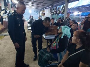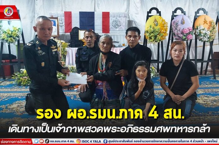 โอกาสนี้ พลตรี รักชาติ รัตนาศักดิ์ ผู้บัญชาการมณฑลทหารบกที่ 43 / รองผู้อำนวยการรักษาความมั่นคงภายในภาค 4 ส่วนหน้า ได้มอบเงินช่วยเหลือเยียวยา พร้อมกล่าวแสดงความเสียใจ ให้กำลังใจแก่ครอบครัวและญาติที่ต้องสูญเสียบุคคลอันเป็นที่รักอย่างสุดซึ้ง โดยระบุว่า “ญาติ มิตร ผู้บังคับบัญชา และเพื่อนร่วมงานรู้สึกเศร้าโศกเสียใจกับการจากไปของวีรชนผู้กล้าที่ปฏิบัติหน้าที่ด้วยความมุ่งมั่น เสียสละ ทุ่มเท มีจิตใจอันกล้าหาญจวบจนวาระสุดท้ายของชีวิต เพื่อความสงบสุขของประชาชนและประเทศชาติ ขอให้ครอบครัวภูมิใจในความเป็นลูกผู้ชายรับใช้ชาติอย่างกล้าหาญ รวมทั้งกองอำนวยการรักษาความมั่นคงภายในภาค 4 ส่วนหน้า จะดูแลเรื่องสิทธิที่ครอบครัวจะได้รับตามระเบียบของทางราชการอย่างเต็มที่ และรวดเร็วที่สุด