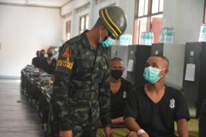 ทั้งนี้ พลตรี เฉลิมพร ขำเขียว ได้พบปะ ให้กำลังใจน้องๆทหารใหม่ที่มารายงานตัว และได้เน้นย้ำการปฏิบัติงานของหน่วยฝึกทหารใหม่ ให้เป็นไปตามนโยบายของ ผู้บัญชาการทหารบก พร้อมได้สั่งการและ กำชับให้ผู้บังคับหน่วยดูแลเอาใจใส่ทหารใหม่อย่างใกล้ชิด ระยะเวลา 6 สัปดาห์ เพื่อการพัฒนาคุณภาพชีวิตของทหารใหม่ ให้พร้อมเป็นกำลังพลของกองทัพบกที่สามารถปฏิบัติภารกิจทางทหาร และช่วยเหลือประชาชนได้อย่างมีประสิทธิภาพ พร้อมทั้งเน้นย้ำให้ระมัดระวังเรื่องสภาพอากาศร้อนซึ่งเสี่ยงต่อการเกิดโรคลมร้อน พร้อมให้กำลังใจน้องทหารให้ผ่านการฝึกไปได้ด้วยดี ตลอดจนเน้นย้ำให้ทุกหน่วยฝึก แจ้งข้อมูล ข่าวสารกับผู้ปกครองว่าทางบ้านไม่ต้องเป็นห่วง เพราะมีช่องทางติดตามข่าวสารบุตรหลานแจ้งให้ทางบ้านทราบตลอดห้วงการฝึก อีกทั้งดูเเลเรื่องสิทธิสวัสดิการของน้องทหารใหม่ อย่าให้ขาดตกบกพร่อง รวมทั้งอาหารการกินต้องมีคุณภาพ ปริมาณเพียงพอ เปรียบเสมือนเป็นบ้านหลังที่ 2 ของน้องทหารใหม่ “ เพราะเราคือ ครอบครัวเดียวกัน “ พร้อมทั้งการปฏิบัติต้องอยู่ภายใต้มาตรการป้องกันการแพร่ระบาดของเชื้อไวรัสโควิด -19 ห้ามไม่ให้เกิดการสูญเสียโดยเด็ดขาด การดูแลด้านคุณภาพชีวิตทหารใหม่ และเน้นย้ำข้อสั่งการให้ผู้บังคับบัญชา ทุกระดับชั้น ต้องมีทักษะรูปแบบการสอนที่ดี ตลอดจนเน้นย้ำการพัฒนาสมรรถภาพร่างกาย ควบคู่ไปกับความรู้ทักษะทางทหาร อุดมการณ์ความรักชาติ ชีวิตความเป็นอยู่ และการดำเนินการฝึก เพื่อสร้างน้องทหารใหม่ให้เป็นทหารอาชีพ พร้อมที่จะปฏิบัติภารกิจต่างๆ ของกองทัพบก และสามารถเป็นที่พึ่งของประชาชนได้ในทุกโอกาส