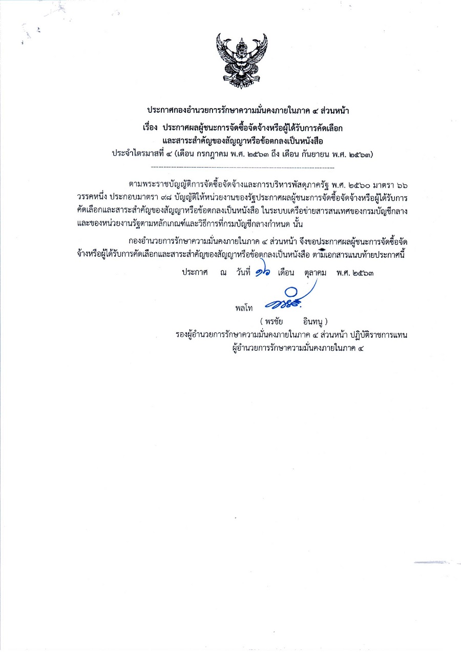 จัดซื้อ จัดจ้างประกาศผู้ชนะการเสนอราคาประกาศราคากลางประกาศแผนการจัดซื้อ จัดจ้าง ประกาศผลผู้ชนะการจัดซื้อจัดจ้างหรือผู้ได้รับการคัดเลือกและสาระสำคัญของสัญญาหรือข้อตกลงเป็นหนังสือ October 20, 2020 1976 Share Facebook Twitter Google+ Telegram LINE สกบ.กอ.รมน.ภาค 4 สน.