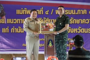 เมื่อวันที่ (16 พฤษภาคม 2566) เวลา 14.00 น. ที่หอประชุมวิทยาลัยชุมชนจังหวัดนราธิวาส อำเภอเมือง จังหวัดนราธิวาส พลโท ศานติ ศกุนตนาค แม่ทัพภาคที่ 4 / ผู้อำนวยการรักษาความมั่นคงภายในภาค 4 เป็นประธานมอบนโยบายแนวทางการปฏิบัติงานการรักษาความปลอดภัยในพื้นที่ ให้แก่ กำนัน ผู้ใหญ่บ้าน ผู้ช่วยผู้ใหญ่บ้านฝ่ายรักษาความสงบของจังหวัดนราธิวาส รวมถึงหารือแนวทางการทำงานร่วมกันของหน่วยกำลังในพื้นที่ พร้อมเน้นย้ำการปฏิบัติหน้าที่ให้เป็นไปในทิศทางเดียวกัน โดยมี พลโท อุทิศ อนันตนานนท์ แม่ทัพน้อยที่ 4, พลตรี ปราโมทย์ พรหมอินทร์ รองแม่ทัพภาคที่ 4/รองผู้อำนวยการรักษาความมั่นคงภายในภาค 4 ส่วนหน้า พร้อมด้วย นายสนั่น พงศ์อักษร ผู้ว่าราชการจังหวัดนราธิวาส และหัวหน้าส่วนราชการ, นายอำเภอ, ปลัดอำเภอ, กำนัน และผู้ใหญ่บ้านในพื้นที่จังหวัดนราธิวาส ร่วมรับมอบนโยบายฯ