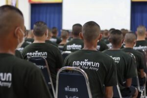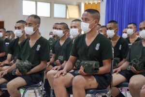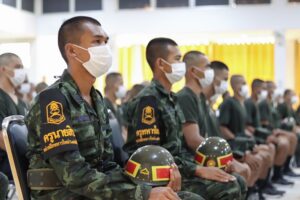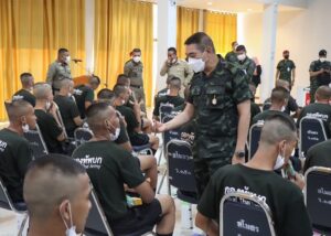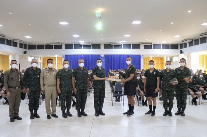 ในโอกาสนี้ได้มอบของอาหารว่าง มิสเตอร์โดนัท ไอศครีม และเครื่องดื่ม แจกจ่ายให้กับน้องๆทหารใหม่ บรรยากาศเป็นไปด้วยความอบอุ่น