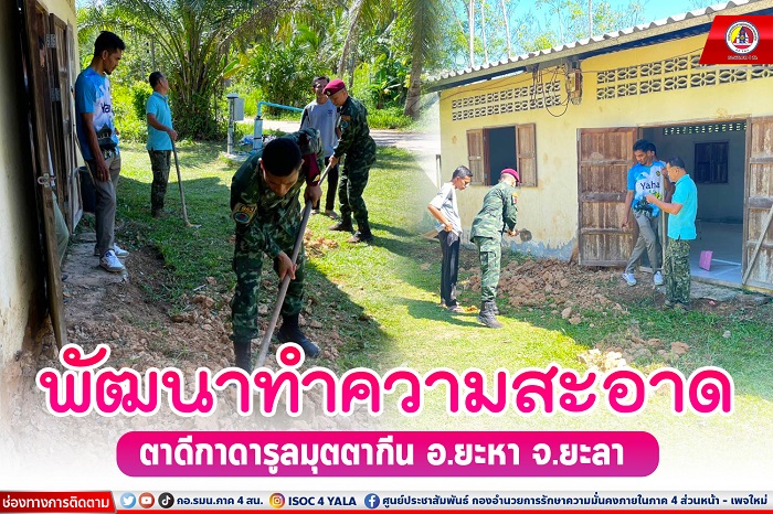 เมื่อวันที่ 16 พฤษภาคม 2566 หน่วยเฉพาะกิจสันติสุข โดย ชุดควบคุมที่ 953 จัดกำลังพล ชุดสันติสุขที่ 304 ร่วมกับผู้ใหญ่บ้าน และประชาชนในพื้นที่ ดำเนินกิจกรรมพัฒนาทำความสะอาด ศูนย์การศึกษาอิสลามประจำมัสยิดดารูลมุตตากีน บ้านกูวิง หมู่ที่ 6 ตำบลบาโร๊ะ อำเภอยะหา จังหวัดยะลา โดยได้ทำความสะอาดพื้นที่โดยรอบของตาดีกา เพื่อให้น่าอยู่ ปลอดภัย ถูกสุขลักษณะ เกิดความสะอาด สวยงาม มีความเป็นระเบียบเรียบร้อย ตลอดจนยังเป็นการสร้างความสัมพันธ์อันดีระหว่างเจ้าหน้าที่กับประชาชนอีกด้วย