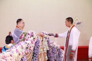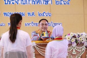 ในโอกาสนี้ องคมนตรี ได้กล่าวแสดงความยินดีและให้โอวาทแก่ผู้สำเร็จการศึกษา ว่า ความสำเร็จในครั้งนี้เกิดจากความวิริยะ อุตสาหะ พากเพียร จนได้รับอนุปริญญาบัตรตามที่มุ่งหวังไว้ ขอให้ผู้สำเร็จการศึกษาทุกท่านพึงระลึกเสมอว่าท่าน คือ ทรัพยากรบุคคลที่มีคุณค่าในการพัฒนาท้องถิ่น พัฒนาชุมชนและประเทศชาติ ควรใช้ความรู้ในทางที่ถูกต้อง ควบคู่กับคุณธรรม จริยธรรม และความซื่อสัตย์สุจริต เพื่อสร้างประโยชน์ให้กับตนเอง ครอบครัว และชุมชน พร้อมทั้งปฏิบัติตนตามหลักเศรษฐกิจพอเพียง น้อมนำศาสตร์ของพระราชามาใช้ในการดำเนินชีวิต