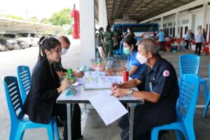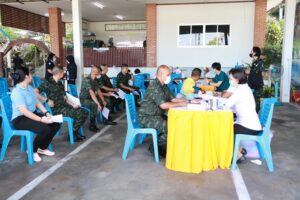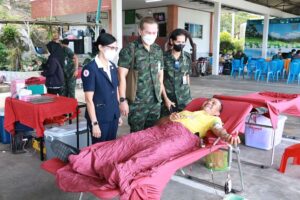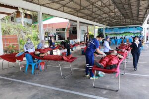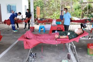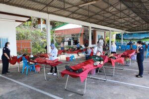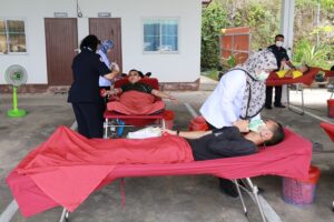 วันนี้ (19 พฤษภาคม 2566) เวลา 09.00 น. ณ โรงจอดรถแผนกขนส่ง กองอำนวยการรักษาความมั่นคงภายในภาค 4 ส่วนหน้า ตำบลเขาตูม อำเภอยะรัง จังหวัดปัตตานี ศูนย์สนับสนุน กองอำนวยการรักษาความมั่นคงภายในภาค 4 ส่วนหน้า จัดกิจกรรมบริจาคโลหิต เพื่อถวายเป็นพระราชกุศลแด่ พระบาทสมเด็จพระบรมชนกาธิเบศร มหาภูมิพลอดุลยเดชมหาราช บรมนาถบพิตร ครั้งที่ 21 โดยมี กำลังพลผู้ปฏิบัติงานร่วมบริจาคโลหิตในครั้งนี้