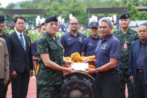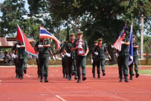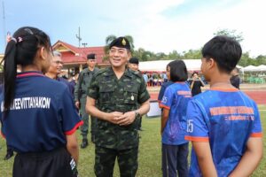 วันนี้ (19 พฤษภาคม 2566) เวลา15.00 น. ที่ โรงเรียนนาทวีวิทยาคม ตำบลคลองทราย อำเภอนาทวี จังหวัดสงขลา พลโท ศานติ ศกุนตนาค แม่ทัพภาคที่ 4 / ผู้อำนวยการรักษาความมั่นคงภายในภาค 4 เป็นประธานเปิดการแข่งขันกีฬาฟุตบอล Sport Power Cup ครั้งที่ 1 รุ่นอายุ 18 ปี ภายใต้การเล่นกีฬานำไปสู่การสร้างมิตรภาพ สันติภาพ และสันติสุข โดยมี ผู้อำนวยการสำนักงานเขตพื้นที่การศึกษามัธยมศึกษาสงขลา, สตูล, ประธานคณะกรรมการจัดการแข่งขัน, ผู้พิพากษาหัวหน้าศาลจังหวัดนาทวี, ผู้บังคับการตำรวจภูธรจังหวัดสงขลา, รองผู้บังคับหน่วยเฉพาะกิจสงขลา, นายอำเภอนาทวี, ผู้อำนวยการสำนักงานเขตพื้นที่การศึกษามัธยมศึกษายะลา, ผู้อำนวยการสำนักงานเขตพื้นที่การศึกษาประถมศึกษาสงขลาเขต 3, ประธานคณะกรรมการสถานศึกษาขั้นพื้นฐานโรงเรียนนาทวีวิทยาคม, ผู้อำนวยการโรงเรียนกีฬา เอสเอ็มเค ตูนกู อานูม ตุนกู อับดุลรอหมาน รัฐเคดาร์ ประเทศมาเลเซีย , คณะครูและนักเรียน เข้าร่วมพิธีอย่างพร้อมเพียง