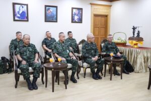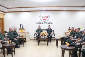 ต่อมา เวลา 11.20 น. ที่ ห้องรับรอง กองอำนวยการรักษาความมั่นคงภายในภาค 4 ส่วนหน้า ค่ายสิริธร ตำบลเขาตูม อำเภอยะรัง จังหวัดปัตตานี พลโท ศานติ ศกุนตาค แม่ทัพภาคที่ 4 / ผู้อำนวยการรักษาความมั่นคงภายในภาค 4 , พลโท อุทิศ อนันตนานนท์ แม่ทัพน้อยที่ 4 และคณะฯ ร่วมต้อนรับ พลโท สุริยะ เอี่ยมสุโร แม่ทัพภาคที่ 3 / ผู้บัญชาการศูนย์ปฏิบัติการกองทัพภาคที่ 3 และคณะฯ เนื่องในโอกาสเข้าเยี่ยมแม่ทัพภาคที่ 4 ตลอดจนได้พบปะ หารือ แลกเปลี่ยนความคิดเห็น ในการแก้ไขปัญหาในพื้นที่จังหวัดชายแดนภาคใต้ ให้พื้นที่เกิดความสันติสุขที่ยั่งยืนต่อไป