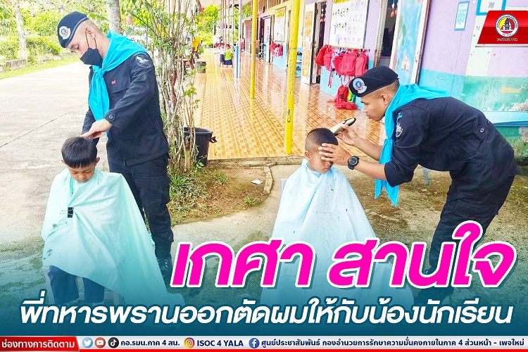 หน่วยเฉพาะกิจกรมทหารพรานที่ 45 โดยกองร้อยทหารพรานที่ 4514 จัดกำลังพลชุดปฏิบัติกิจการพลเรือน ลงพื้นที่ไปยังโรงเรียนบ้านเขาน้อย หมู่ที่ 1 ตำบลบาโงสะโต อำเภอระแงะ จังหวัดนราธิวาส เพื่อออกให้บริการตัดผมกับนักเรียนชาย ตามโครงการ “เกศา สานใจ” โดยให้บริการฟรี เพื่อให้นักเรียนได้เล็งเห็นช่องทางในการประกอบอาชีพในอนาคต อีกทั้งยังเป็นการลดภาระค่าใช้จ่ายของผู้ปกครองและทำให้นักเรียนมีทรงผมที่ถูกต้องตามกฎระเบียบของโรงเรียน