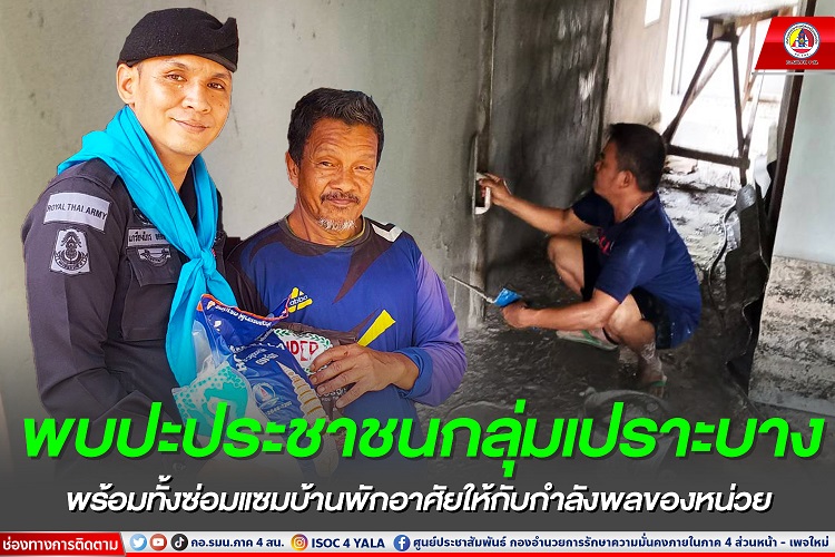 หน่วยเฉพาะกิจกรมทหารพรานที่ 41 จัดกำลังพล ชุดปฏิบัติการเสริมสร้างความเข้าใจ กองร้อยทหารพรานที่ 4103 เข้าพบปะ นายมะหะมะ กะนาเปะ ประชาชนกลุ่มเปราะบาง ณ บ้านเลขที่ 53 หมู่ที่ 1 ตำบลกาลอ อำเภอรามัน จังหวัดยะลา พร้อมทั้งมอบเครื่องบริโภค เพื่อเป็นการช่วยเหลือบรรเทาความเดือดร้อนเบื้องต้นให้กับประชาชน ซึ่งนายมะหะมะ กะนาเปะ เป็นผู้ได้รับการคัดเลือกก่อสร้างที่พักอาศัย โดยได้รับการสนับสนุนงบประมาณ ตามโครงการ “หน่วยเฉพาะกิจยะลา ไม่ทิ้งท่าน” พร้อมทั้งประชาสัมพันธ์นโยบายของแม่ทัพภาคที่ 4 เพื่อสร้างการมีส่วนร่วมในการแก้ไขปัญหาในพื้นที่