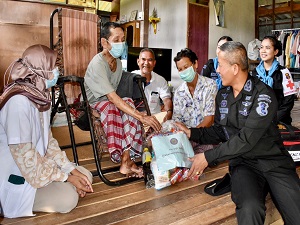 พันเอก ภาคภูมิ จันทรักษ์ ผู้บังคับหน่วยเฉพาะกิจกรมทหารพรานที่ 44 นำกำลังพล ร่วมกับ เจ้าหน้าที่อาสาสมัครสาธารณสุขประจำหมู่บ้าน (อสม.) ลงพื้นที่ในชุมชนต่าง ๆ ของ ตำบลไม้แก่น อำเภอไม้แก่น จังหวัดปัตตานี เพื่อพบปะเยี่ยมเยียน ให้กำลังใจพี่น้องประชาชนกลุ่มเปราะบาง (ผู้ป่วยติดเตียง และผู้สูงอายุ) พร้อมทั้งสอบถามความเป็นอยู่ และให้กำลังใจในการดำเนินชีวิตประจำวัน รวมทั้งได้สอบถามความต้องการ ปัญหาข้อขัดข้องต่าง ๆ ในการดำเนินชีวิต เพื่อที่ทางหน่วย และส่วนราชการต่าง ๆ จะได้หาหนทางในการช่วยเหลือในโอกาสต่อไป โดย ผู้บังคับหน่วยเฉพาะกิจกรมทหารพรานที่ 44 ยังได้มอบถุงยังชีพให้กับประชาชนกลุ่มเป้าหมายดังกล่าว เพื่อเป็นการช่วยเหลือ และบรรเทาความเดือดร้อนในการดำเนินชีวิต ตลอดจนเป็นการสร้างขวัญกำลังใจให้กับประชาชนในพื้นที่