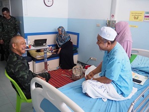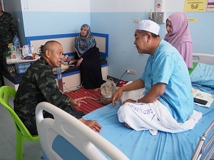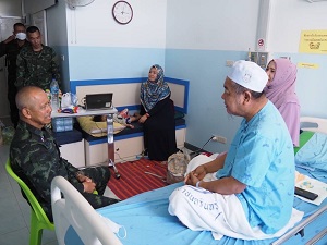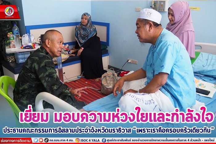 เมื่อวันที่ 23 พฤษภาคม 2566 เวลา 15.00 น. ที่ ตึกนวมินทร์ ชั้น 1 ห้อง 2 โรงพยาบาลนราธิวาสราชนครินทร์ ตำบลบางนาค อำเภอเมือง จังหวัดนราธิวาส พลตรี เฉลิมพร ขำเขียว ผู้บัญชาการกองพลทหารราบที่ 15/ ผู้บังคับหน่วยเฉพาะกิจนราธิวาส เดินทางเข้าเยี่ยมเยียนให้กำลังใจ นายซาฟีอี เจ๊ะเลาะ ประธานคณะกรรมการอิสลามประจำจังหวัดนราธิวาส ซึ่งเข้ารักษาตัว ด้วยอาการโรคเบาหวาน ตั้งแต่วันที่ 17 พฤษภาคม 2566 ที่ผ่านมา โดยปัจจุบันมีอาการดีขึ้น และมีสภาพจิตใจที่ดี ในการนี้ได้มอบกระเช้าเยี่ยมผู้ป่วย เพื่อเป็นขวัญและกำลังใจ บรรยากาศเป็นไปด้วยความอบอุ่น แสดงให้เห็นถึงมิตรภาพ และความสัมพันธ์อันดีของพี่น้องชาวไทยพุทธ ไทยมุสลิม ที่ปฏิบัติงานร่วมกัน ระหว่างเจ้าหน้าที่รัฐ และผู้นำศาสนา ที่ร่วมทุกข์ ร่วมสุข ร่วมช่วยเหลือ และร่วมแก้ไขปัญหา เพื่อนำสันติสุขกลับสู่จังหวัดชายแดนภาคใต้