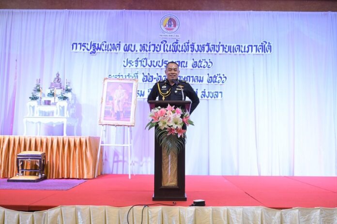 วันนี้ 24 พฤษภาคม 2566 เวลา 11.00 น. ที่ โรงแรมบีพี สมิหลา บีช โฮเทล แอนด์ รีสอร์ท ตำบลบ่อยาง อำเภอเมือง จังหวัดสงขลา พลตรี เฉลิมพงค์ คงบัว เลขาธิการ กองอำนวยการรักษาความมั่นคงภายในภาค 4 ส่วนหน้า เป็นประธานในพิธีปิดการปฐมนิเทศ ผู้บังคับหน่วยระดับ ผู้บังคับกองร้อย และฝ่ายอำนวยการของหน่วยเฉพาะกิจในพื้นที่จังหวัดชายแดนภาคใต้, ปลัดอำเภอ, นายตำรวจระดับสารวัตร, รองสารวัตร, เจ้าหน้าที่ศูนย์อำนวยการบริหารจังหวัดชายแดนภาคใต้ส่วนหน้า และเจ้าหน้าที่ศูนย์ขับเคลื่อนการศึกษาในจังหวัดชายแดนภาคใต้ (ครึ่งปีหลัง) จำนวน 128 นาย เข้าร่วมปฐมนิเทศไปเมื่อวันที่ 22 พฤษภาคม ที่ผ่านมา