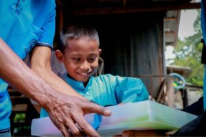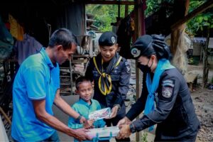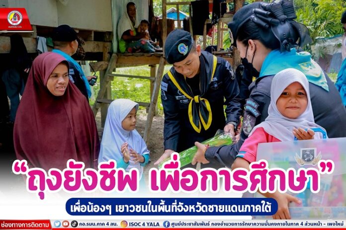 เมื่อวันที่ 26 พฤษภาคม 2566 เวลา 10.00 น. ที่บ้านบ่อทอง หมู่ที่ 13 ตำบลตันหยงมัส อำเภอระแงะ จังหวัดนราธิวาส พันเอก ณัฐภูมิ ฉัตรภูมิ รอง ผู้บังคับหน่วยเฉพาะกิจกรมทหารพรานที่ 45 พร้อมด้วย นายทหารฝ่ายกิจการพลเรือน หน่วยเฉพาะกิจกรมทหารพรานที่ 45 และ ชุดปฏิบัติการกิจการพลเรือนหญิงฯ ลงพื้นที่มอบถุงยังชีพเพื่อการศึกษา อุปกรณ์การเรียน, สื่อการเรียนการสอน และของเล่น ตามโครงการ “ถุงยังชีพเพื่อการศึกษา” ให้กับเด็กนักเรียน ในพื้นที่ถิ่นทุรกันดาร ที่อยู่ในพระบรมราชูปถัมภ์ ของสมเด็จพระกนิษฐาธิราชเจ้า กรมสมเด็จพระเทพรัตนราชสุดาฯ สยามบรมราชกุมารี ตามนโยบายของผู้บัญชาการทหารบกที่มีความห่วงใยและส่งต่อโอกาสให้กับเด็กนักเรียนที่อยู่ห่างไกล ได้เข้าถึงโอกาสทางการศึกษา เพื่อเป็นขวัญและกำลังใจ และเพิ่มโอกาสทางการศึกษาให้เติบโตเป็นอนาคตของชาติที่มีคุณภาพต่อไปในอนาคต