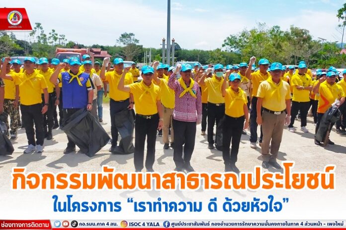 สำหรับกิจกรรมพัฒนาสาธารณประโยชน์ ในโครงการ “เราทำความ ดี ด้วยหัวใจ”นี้ ได้จัดขึ้น เพื่อให้ประชาชนในพื้นที่ ที่มีจิตอาสาได้ร่วมแรงร่วมใจกันพัฒนาสถานที่ต่าง ๆในชุมชนของตนเอง ไม่ว่าจะเป็นที่พักสงฆ์ มัสยิด หรือแม้แต่โรงเรียนตาดีกา เป็นต้น พร้อมทั้งได้ปลูกฝังให้ประชาชนได้มีจิตอาสาในการพัฒนาพื้นที่ในชุมชนของตนเองต่อไป