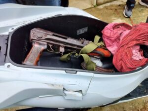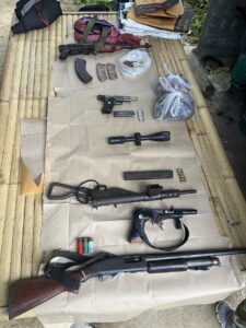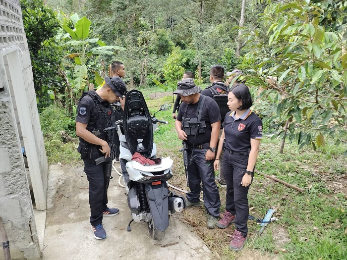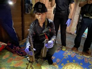 เมื่อวันที่ 26 พ.ค.66 เวลา 14.40 น. เจ้าหน้าที่หน่วยเฉพาะกิจกรมทหารพรานที่ 49 ได้ร่วมกับเจ้าหน้าที่ตำรวจภูธรศรีสาคร จัดตั้งจุดตรวจจุดสกัดบนถนนหมายเลข 2040 บ้านตะเคียนต้นเดียว หมู่ที่ 1 ตำบลศรีบรรพต อำเภอศรีสาคร จังหวัดนราธิวาส ในระหว่างนั้นได้ทำการลาดตระเวนพื้นที่โดยรอบตรวจพบบุคคลต้องสงสัยซึ่งเมื่อเห็นเจ้าหน้าที่ได้วิ่งหลบหนีและได้ทำปืนพกสั้นหล่นจำนวน 1 กระบอก เจ้าหน้าที่จึงได้ทำการตรวจยึดและลาดตระเวนโดยรอบพบบุคคลต้องสงสัยอีกจำนวน 4 ราย จึงได้ทำการตรวจค้นที่ตัว ยานพาหนะ ที่พัก และบริเวณใกล้เคียง พบอาวุธปืนเพิ่มเติมอีกจำนวน 4 กระบอก ประกอบด้วย ปลย. เอเค 47 , ปืนกลมืออูซี่ , ปืนลูกซอง และปืนพกสั้นไทยประดิษฐ์ อย่างละ 1 กระบอก รวมเป็น 5 กระบอก จึงได้ควบคุมตัวผู้ต้องสงสัยส่งศูนย์ซักถามกรมทหารพรานที่ 46 จำนวน 3 ราย ประกอบด้วย