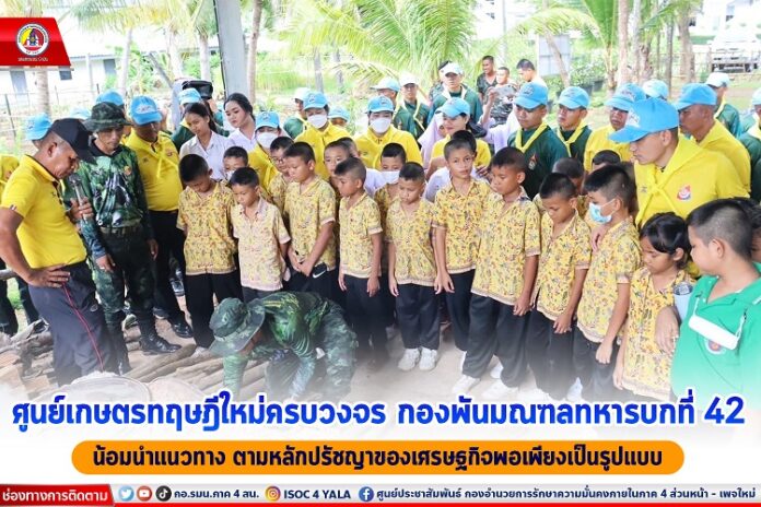 เมื่อวันที่ 26 พฤษภาคม 2566 เวลา 13.00 น. ณ ศูนย์การเรียนรู้เศรษฐกิจพอเพียง กองพันมณฑลทหารบกที่ 42 ค่ายเสนาณรงค์ อำเภอหาดใหญ่ จังหวัดสงขลา พันเอก เอกวริทธิ์ ชอบชูผล ผู้บังคับกองพันมณฑลทหารบกที่ 42 ได้นำกำลังพล นายทหาร, นายสิบ, ทหารกองประจำการ และสมาคมแม่บ้านทหารบก สาขากองพันมณฑลทหารบกที่ 42 พร้อมด้วย โรงเรียนเสนาณรงค์วิทยา ได้ทำกิจกรรมการลงแขกเกี่ยวข้าว การเผาถ่านด้วยวิถีชาวบ้าน และเก็บน้ำส้มควันไม้จากการเผาถ่าน พร้อมทั้งให้คำแนะนำ ให้ความรู้ทางด้านภูมิปัญญาชาวบ้าน เพื่อเป็นการสืบสานประเพณีอันดีงามของคนไทย และเป็นการปฏิบัติน้อมนำแนวทางความคิด ตามหลักปรัชญาของเศรษฐกิจพอเพียงเป็นรูปแบบ อีกทั้งยังส่งเสริมกำลังพล เรียนรู้ตามแนวทางปรัชญาเศรษฐกิจพอเพียงต่อไป