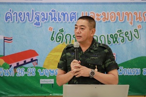 พลโท ศานติ ศกุนตนาค แม่ทัพภาคที่ 4/ผู้อำนวยการรักษาความมั่นคงภายในภาค 4 กล่าวว่า วันนี้ตั้งใจมาพบปะพร้อมมอบกำลังใจให้เยาวชนที่ได้รับทุนในโครงการเด็กทุนลูกเหรียง ถึงแม้ว่าเราโตมาในพื้นที่ที่มีความความไม่สงบ แต่เราทุกคนเป็นบุคคลสำคัญที่จะเติบโตเป็นอนาคตของชาติ ที่เราต้องรวมพลังและแสวงหาหนทางแก้ปัญหาร่วมกันย่อมนำสันติสุขให้เกิดขึ้นในพื้นที่ได้ ขอให้ลูกๆเยาวชนทุกคนรักษาไว้ซึ่งคุณงามความดี รักษาโอกาสที่ผู้ใหญ่ใจดีทุกภาคส่วนหยิบยื่นให้ และพัฒนาศักยภาพของตนเองให้ดียิ่งๆขึ้นไป ซึ่งกองอำนวยการรักษาความมั่นคงภายในภาค 4 ส่วนหน้า พร้อมให้การสนับสนุนกิจกรรมของทุกภาคส่วน เพื่อพัฒนาและต่อยอดให้เยาวชนในพื้นที่ให้มีคุณภาพชีวิตที่ดีขึ้น