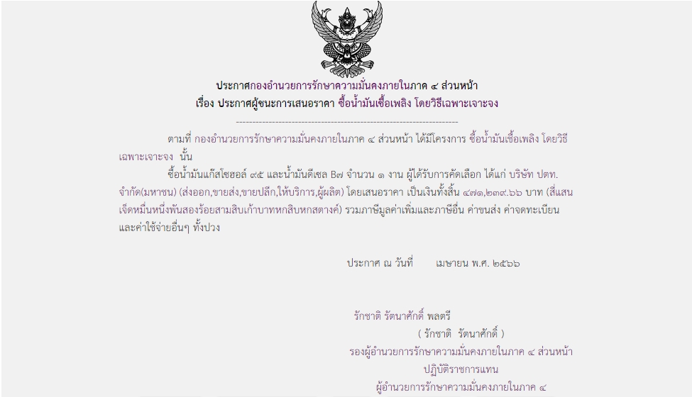 จัดซื้อ จัดจ้างประกาศผู้ชนะการเสนอราคา ประกาศผู้ชนะการเสนอราคา ซื้อน้ำมันเชื้อเพลิง โดยวิธีเฉพาะเจาะจง May 28, 2023 399 Share Facebook Twitter Google+ Telegram LINE