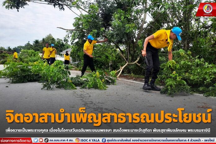 เมื่อวันที่ 27 พฤษภาคม 2566 ณ พื้นที่ อำเภอรามัน จังหวัดยะลา กองร้อยทหารพราน หน่วยเฉพาะกิจกรมทหารพรานที่ 41 จัดกำลังพลจิตอาสา ร่วมกับ ผู้นำศาสนา, ผู้นำท้องที่, ผู้นำท้องถิ่น, ลูกจ้างงานเร่งด่วน และประชาชนจิตอาสาในพื้นที่ ดำเนินการจัดกิจกรรม จิตอาสาบำเพ็ญสาธารณประโยชน์ ด้วยการพัฒนาปรับปรุงภูมิทัศน์บริเวณสองข้างทางถนนให้มีความความสะอาดเรียบร้อย เพื่อถวายเป็นพระราชกุศล เนื่องในโอกาสวันเฉลิมพระชนมพรรษา สมเด็จพระนางเจ้าสุทิดา พัชรสุธาพิมลลักษณ พระบรมราชินี (3 มิถุนายน 2566)