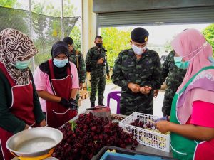 ทั้งนี้ ผู้อำนวยการศูนย์ประสานงานโครงการอันเนื่องมาจากพระราชดำริ ยังไปเยี่ยมชมการผลผลิต และผลิตภัณฑ์ของสมาชิกฟาร์มตัวอย่างฯ และให้แนวทางในการขับเคลื่อน ขยายตลาดของผลิตภัณฑ์ของฟาร์ม เพื่อให้ฟาร์มตัวอย่างฯ ตามพระเสาวนีย์ของสมเด็จพระนางเจ้าสิริกิติ์ พระบรมราชินีนาถ พระบรมราชชนนีพันปีหลวง สามารถดำเนินงานได้อย่างมีประสิทธิภาพ สมาชิกฟาร์มตัวอย่างฯ สามารถเลี้ยงดูตัวเองได้ ภายใต้ปรัชญาเศรษฐกิจพอเพียง เพื่อเป็นการช่วยเหลือเกษตรกรที่ประสบความยากลำบาก ให้สามารถผ่านช่วงวิกฤตได้
